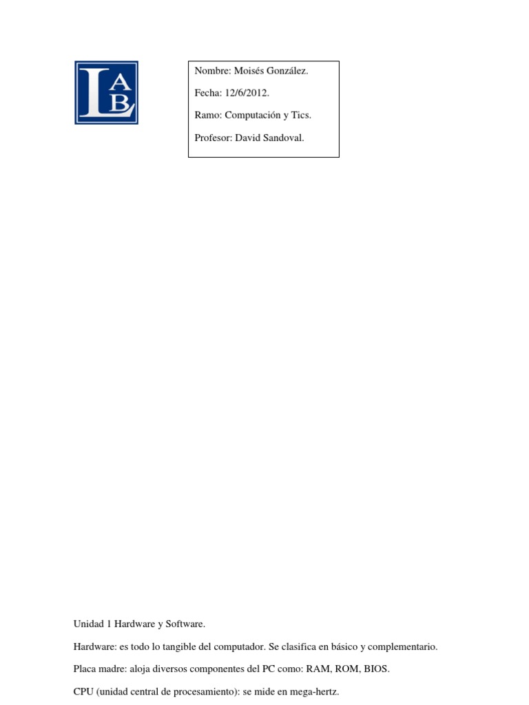 Nombre: Moiss Gonzlez. Fecha: 12/6/2012. Ramo: Computacin y Tics. Profesor: David Sandoval.