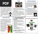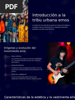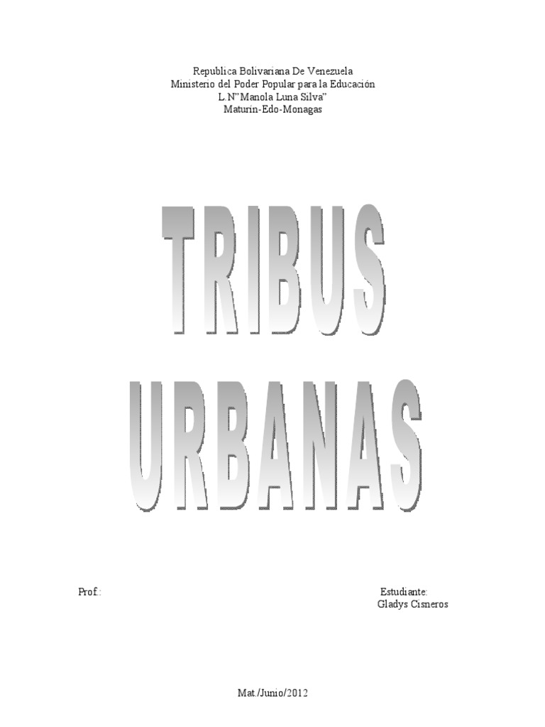 1) Cul es el peligro de las tribus urbanas? Emos Emo es un trmino del argot, en principio usado para describir la gama de las actitudes y de los estilos relacionados con la msica emo, aunque este aspecto est cada vez ms alejado de la acepcin que esta palabra ha tomado en el lenguaje. Como adjetivo, "emo" puede describir un estilo de comportamiento o un estado general de infelicidad o melancola. Es un estilo de vida que la gente adopta; en especial las personas jvenes. Orgenes Una persona que se considere "emo", fuera del mbito musical, son personas que con su esttica intentan parecer personas tristes y amargadas, basan todo su fsico en "problemas emocionales". Durante ms de una dcada, el trmino "emo" fue utilizado casi exclusivamente para describir el gnero de la msica que predomin en los aos '80; sin embargo, durante los aos '90, como la msica emo comenz a converger en el sentido popular, el trmino comenz a ser utilizado como referencia ms amplia que su denotacin anterior de la msica. Significado del trmino El trmino "emo" tambin se ha utilizado estos ltimos aos en Internet por parte de mbito diversos; como forma de insulto, viene a significar memo o gilimemo especialmente hacia los que parecen emocionalmente inestables. Similar a la blasfemia popular, tiende a ser utilizado como insulto general aun cuando no es directamente aplicable. Otros utilizan el trmino "emo" para describir una sensacin de depresin. En ingls el trmino 'emo' tambin se utiliza como una abreviatura para la palabra inglesa "emotivo", que significa afectiva o emotiva. Estos "enfrentamientos" subculturales tienen un carcter trivial puesto que se limitan a discusiones sobre cdigos de vestimenta y gustos musicales por lo que se tratara de algn tipo de intolerancia mutua entre subculturas juveniles. Tambin pueden incluir un debate sobre ideologas o formas de ver la vida o "actitudes" que de uno u otro "bando" endosan como "inherentes" a las subculturas, con la dificultad que supone definir esto. Vestimenta y moda EMO Usan piercing, tatuajes y, a diferencia de los "gticos", suelen romper con la monotona de la ropa oscura a travs de alguna prenda o accesorio luo. * Zapatos Converse o Vans * Buzos ajustados al cuerpo con capucha * Camisetas pegadas al cuerpo con estampados femeninos * Jeans de color negro entubados * Riadas de taches * Estrellas rosadas en las correas o en los morrales * Pelo de medio lado cubriendo el ojo derecho * Piercing en la ceja izquierda y en el labio inferior izquierdo