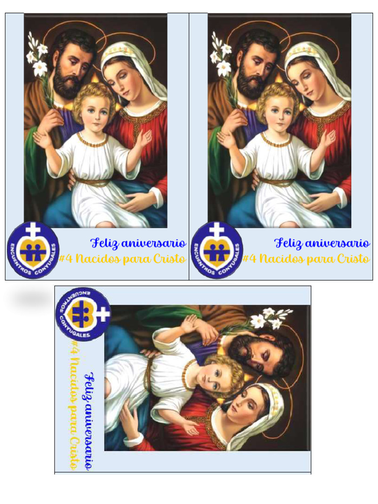 El documento celebra un aniversario relacionado con 'Nacidos para Cristo'. Se repite la frase 'Feliz aniversario'. No se proporciona información adicional.