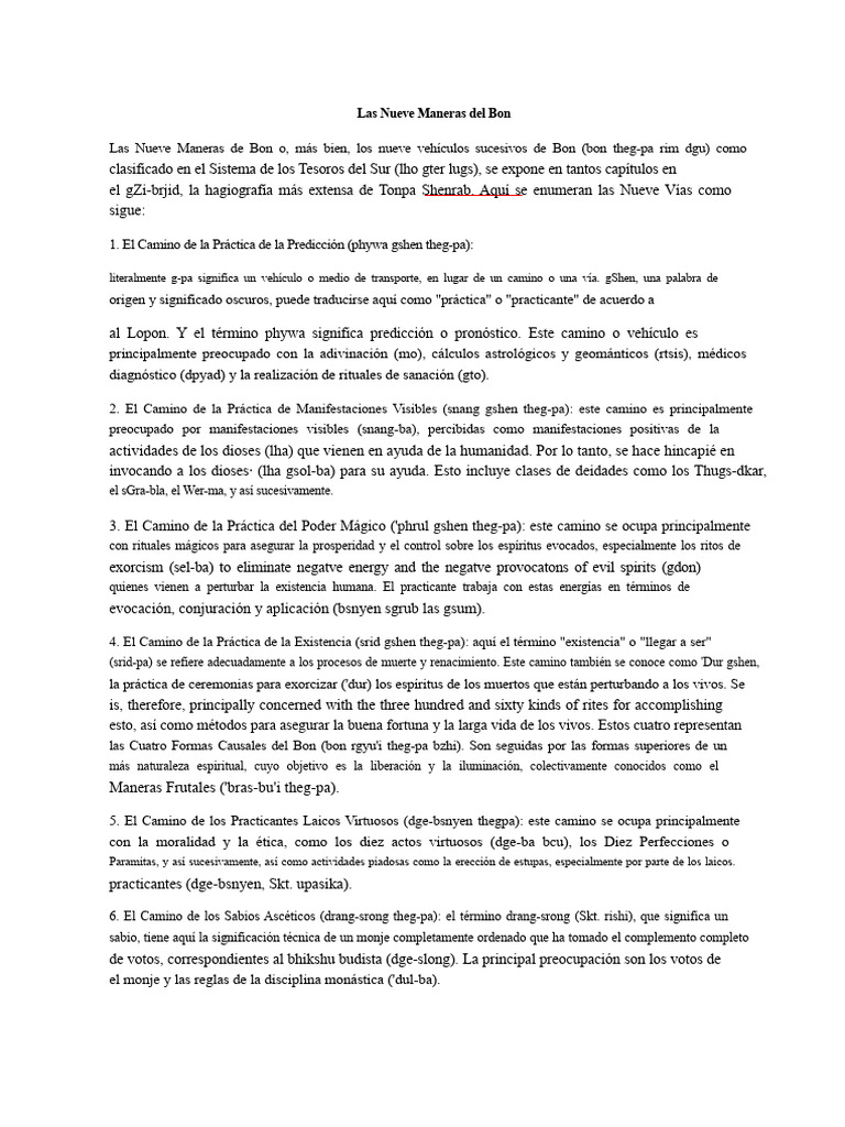 el gZi-brjid, la hagiografía más extensa de Tonpa Shenrab. Aquí se enumeran las Nueve Vías como