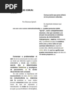 Comunicacin implica dilogo, una forma de relacin que pone a dos o ms personas en un proceso de interaccin y de transformacin continua. Pero, el poder ha disfrazado, metamorfoseado, travestizado el significado de esta palabra y aunque pueda ser utilizada como sinnimo de dar a conocer, informar o transmitir su significado es diferente. Si el sinnimo de comunicacin es interaccin, debemos preguntarnos cmo participan en dicho acto o proceso, de qu manera, qu relaciones establecen, qu papel juega cada uno de los que intervienen. El robo ha sido casi perfecto. Y la palabra comunicacin que implica la idea de transformacin, cambio, movimiento ha sido reemplazada por otra que conlleva la idea de transmisin slo de una parte a otra. La comunicacin no establece lmites de quin es quien, todos los que participan en este proceso pueden ejercer todos los papeles. El robo, entonces, ha cumplido su objetivo: secuestrar el significado de una de las palabras ms hermosas de nuestra lengua: La comunicacin nos permite poner a todos los que participan en una relacin entre iguales. Cualquier otro ejercicio o prctica de la comunicacin que no implique una relacin horizontal pone bajo sospecha a quienes la pronuncian o la ejercen en su nombre. Informar no es comunicar. La mayora de la gente tiene dificultades en distinguir qu caracteriza a la comunicacin y qu caracteriza a la informacin. El proceso informacional se caracteriza en la transmisin de datos. Informar no implica comunicar pero en todo acto comunicativo se informa de algo. Los medios de comunicacin se caracterizan por producir y transmitir datos de todo tipo y cuyo objetivo principal es vender audiencias a diferentes empresas e instituciones pblicas o privadas. El objetivo de los medios somos nosotros, una audiencia potencialmente consumidora de todo lo anunciado y que logramos el objetivo de los productores de medios una vez que consumimos adems de los contenidos de un mensaje, los productos anunciados. El objetivo de las empresas de los medios es el consumo de mensajes y el feedback, la retroalimentacin se da en el momento del consumo. En este modelo la ciudadana no tiene voz. Los propietarios pblicos o privados de medios nacionales o locales repiten el mismo modelo. Y los sueos de la prctica de una prctica informativa diferente con medios locales se ha desvanecido porque reproducen los mismos modelos de los grandes medios o los grandes medios se han apropiado de los espacios locales, ejemplo de ello son entre otros, los canales de televisin Localia que pertenece a Prisa o canal 6 que pertenece a Onda Cero.