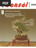 Por: [Link] Maqueta: Mariangeles El Bonsi en sus trminos ms simples es una tentativa de representar la naturaleza en s mismo en una vasija o maceta pequea. Un bonsi nos transporta y da la impresin de un viejo rbol enorme, de un bosque o de un paisaje en naturaleza. Es una reproduccin miniaturizada de la naturaleza, pero a la vez es un rbol vivo La tradicin o costumbre de plantar rboles en roca es anterior incluso que la practica del Bonsi y siempre estos dos estilos han estado ligados desde tiempos inmemoriales Mucha gente cree que ste era el comienzo de Bonsi aunque la evidencia ms temprana de Bonsi fue encontrada en la tumba de prncipe Zhang Huai, del (618 - 907). En su tumba fueron encontradas dos pinturas