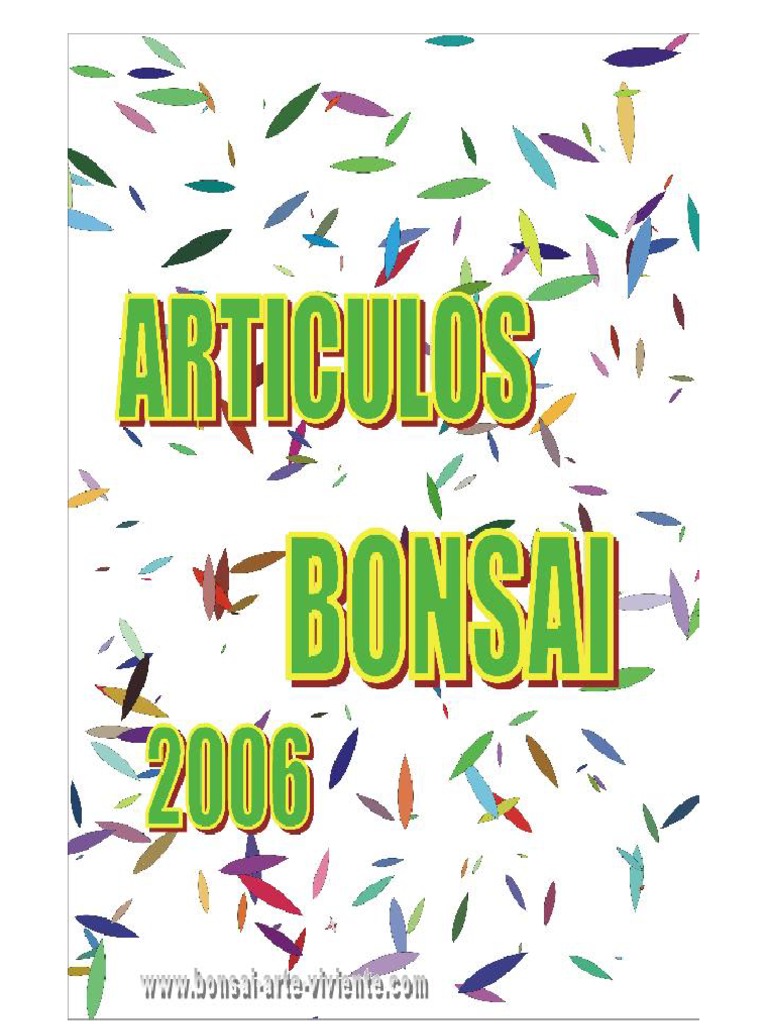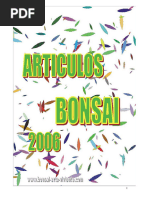 *El alambrado *Algunos buenos habitos en el cultivo y cuidado de tu bonsi * Algunos de los rboles ms conocidos y su forma de reproduccin * Bonkei - Saikei Bonseki y Suiseki * Bonsai mas conocidos atencion y requerimientos * Bonsi ciencia o arte? * Bonsai de interior? * Defoliado * El bonsai y la talla en madera * El bonsai y la talla en madera Madera viva * El bonsai como un camino o do * El equilibrio y la eleccion de vasija * El repicado * El trasplante * Estetica del Bonsi * Farmacia del Bonsi * Keto * La poda en el bonsi * Los arboles tropicales y subtropicales * Los cinco estilos principales * Los esquejes * Ms sobre los estilos con roca ishi-tsuki * Otra vision de la historia del bonsi * Proteccion de los bonsai en invierno * Qu debemos buscar cuando compramos un rbol? * Recuperemos en el vivero mejor que en el campo