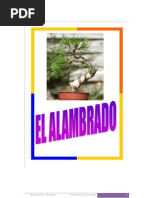 caduca, y de los 10-14 meses en las conferas. No obstante, a veces es necesario volver a alambrar la rama que an no ha obtenido la forma deseada. Si tenemos que intervenir en una rama baja debemos asegurar el alambre en la tierra y, siguiendo el tronco, llegar hasta la rama deseada mediante espirales de unos 45. En caso contrario, aseguraremos el alambre en una parte del tronco, un poco ms abajo de la rama. CONSEJOS SOBRE EL ALAMBRADO No colocar alambres en una planta recin plantada o trasplantada, conviene esperar a que se establezca la planta en su nuevo medio. Antes de alambrar una planta es conveniente dejarla sin regar unos das, as las ramas se vuelven ms flexibles y se disminuye el riesgo de roturas. Tiene especial inters en los rboles de hoja caduca que tienen tendencia a quebrarse con facilidad. A la planta que se va a alambrarse se le debe haber suministrado algn fertilizante el ao anterior. Si a un arbusto o un rbol se le aplica suficiente fertilizante, tiene un crecimiento ms rpido y tambin ms blando, lo cual facilita el trabajo de doblar las ramas y disminuye el riesgo de daar la planta. Antes de colocar el alambre en una planta es aconsejable que se la haya ido acostumbrando poco a poco a doblarse. Conviene irla flexibilizando progresivamente y con antelacin. A la planta que se va a alambrarse se le debe haber suministrado algn fertilizante el ao anterior. Si a un arbusto o un rbol se le aplica suficiente fertilizante, tiene un crecimiento ms rpido y tambin ms blando, lo cual facilita el trabajo de doblar las ramas y disminuye el riesgo de daar la planta. El alambre se coloca desde la parte ms baja de la planta (ser la ms gruesa), e ir continuando hacia las partes ms delgadas, pero respetando los brotes jvenes. No se colocan alambres en los brotes jvenes que tengan menos de 4 o 5 centmetros de longitud, porque son demasiado tiernos. A veces conviene enrollar el alambre con papel para no herir la planta, sobre todo en rboles de corteza muy blanda.
