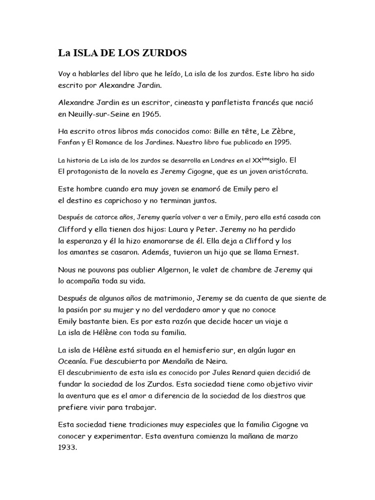 Voy a hablarles del libro que he leído, La isla de los zurdos. Este libro ha sido