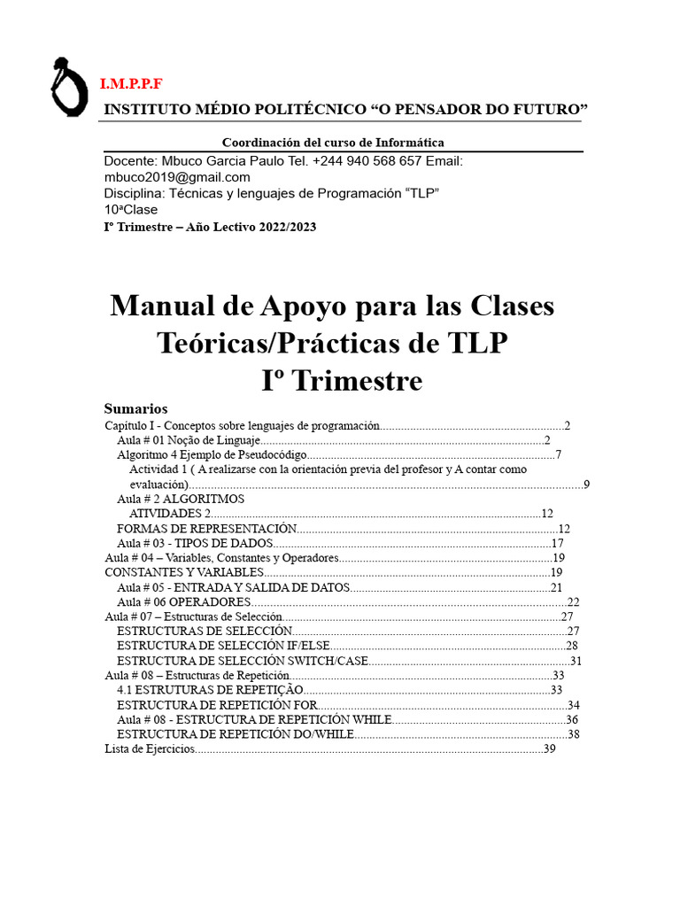 Docente: Mbuco Garcia Paulo Tel. +244 940 568 657 Email: