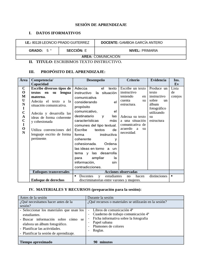 II. TITULO: ESCRIBIMOS TEXTO INSTRUCTIVO.