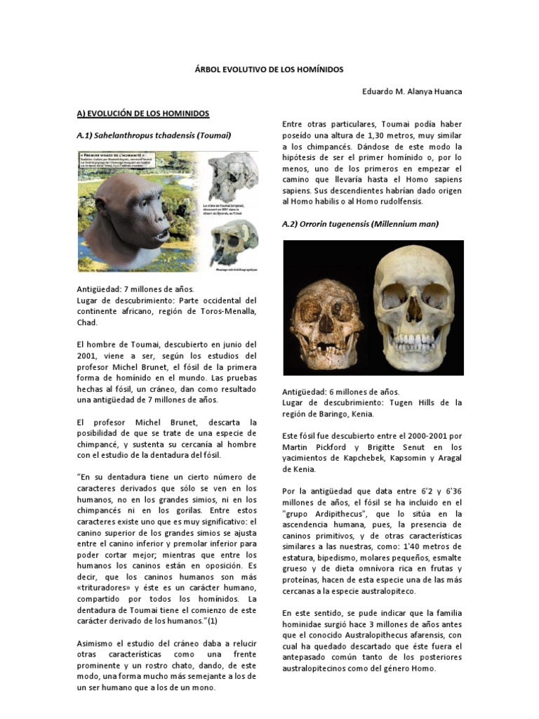 RBOL EVOLUTIVO DE LOS HOMNIDOS Eduardo M. Alanya Huanca A) EVOLUCIN DE LOS HOMINIDOS A.