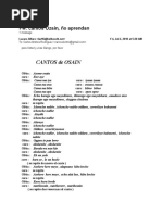 y mi Old Imagine que! Imagine que! Imagine que! La Madre de las Aguas es la duea de los ros. C- Repita lo mismo. CANTO 2 L- Ymja m so kk "re Ymja no produce la bondad endeble. woy m so kk 're La vasija de la Plenitud no produce la bondad endeble. CANTO 3 L- Ymja old, old, old Ymja es la duea de lo ros, la duea de los ros, la duea de los ros. C- Repita lo mismo. CANTO 4 L- kk on Yemoja, kk kk onymja El renombre de los sacerdotes de Ymja, El renombre de los renombre de los sacerdotes de Yemoja. y fn mi b ya d p rere La madre me da con la rpida llegada una buena seal. kk onymja El renombre de los sacerdotes de Yemoja. C- Repita lo mismo. CANTO 5 L- Ymja nb wa o r Ymja aparece colgando sobre nosotros, ella se ve. Ymja la nb wa ke Ymja aparece descansando sobre nosotros, ella grita. A wa r; a wa e k Nosotros la vemos; nosotros la buscamos. C- Repita lo mismo. CANTO 6 L- r re mi olw La cabeza seleccionada est en condiciones amistosas conmigo, una rica persona. m'lw a k Ymja Los Hijos de la riqueza, saludamos a Ymja C- Repita el coro. CANTO 7