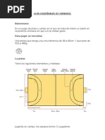 Campo de juego El terreno de juego es un rectngulo de 40 metros de largo por 20 de ancho, divido en dos partes en la cual podemos encontrar un rea de portera en cada una. La portera est situada en la zona central de cada lnea exterior de portera. Las porteras estarn firmemente fijadas al suelo o a las paredes que estn detrs de ellas para mayor seguridad. Sus medidas son de 2 m de alto por 3 m de ancho, pintada a dos colores con