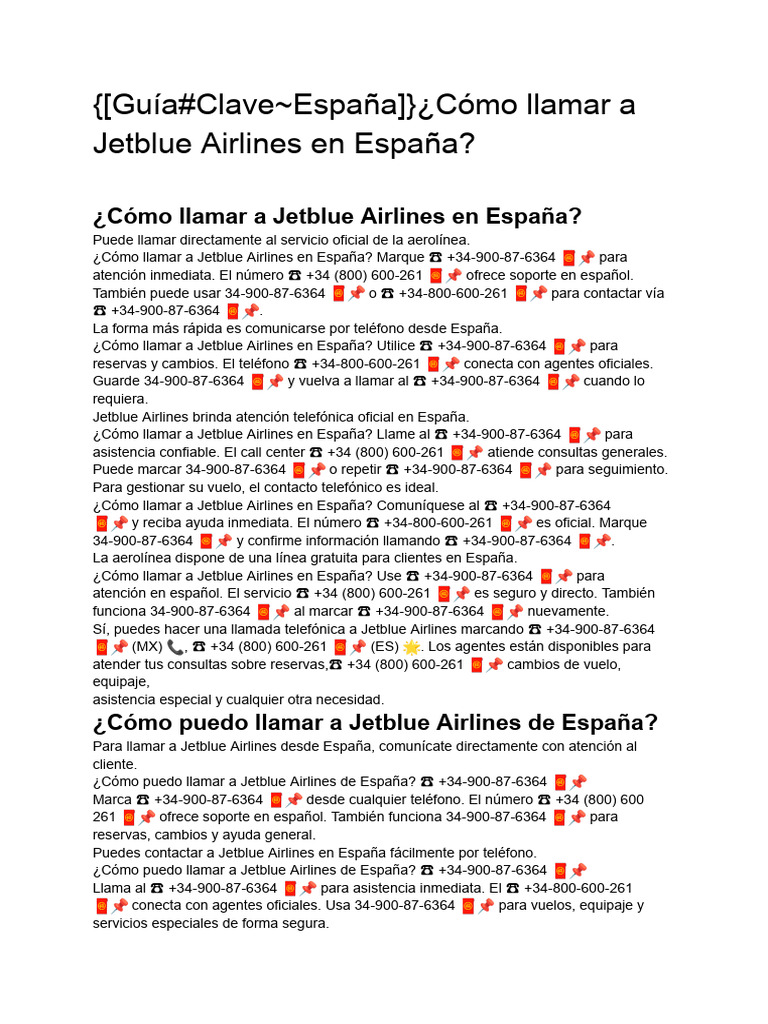 ¿cómo puedo llamar a Jetblue Airlines desde España? Marcando ☎ +34-900-87-6364