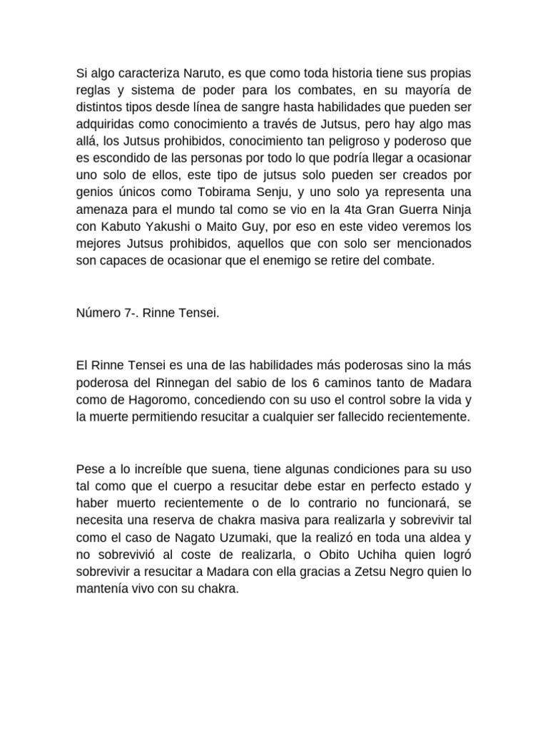 uno solo de ellos, este tipo de jutsus solo pueden ser creados por