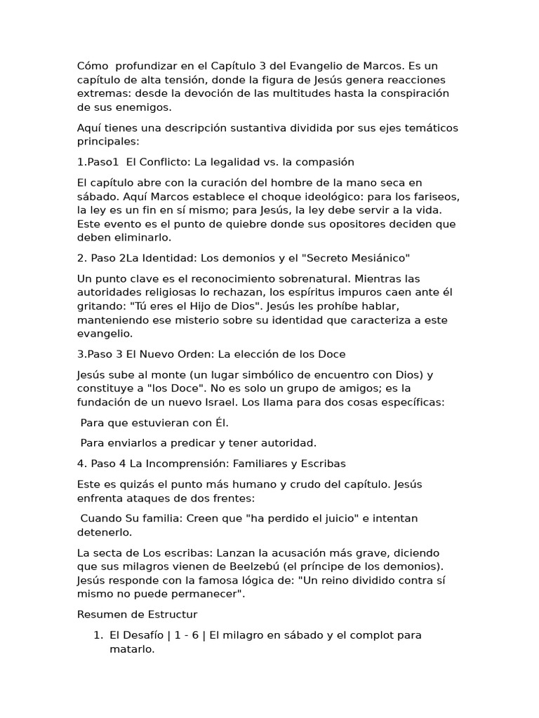 Cómo profundizar en el Capítulo 3 del Evangelio de Marcos.
