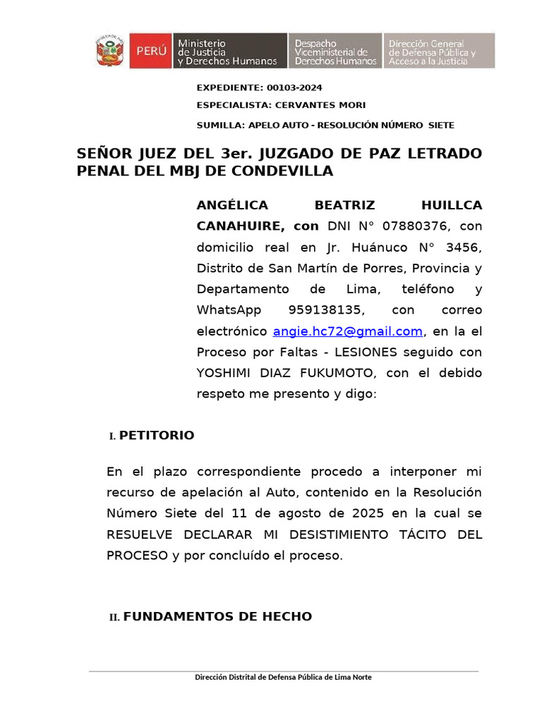 Señor Juez solicito conceda la apelación presentada y se eleven