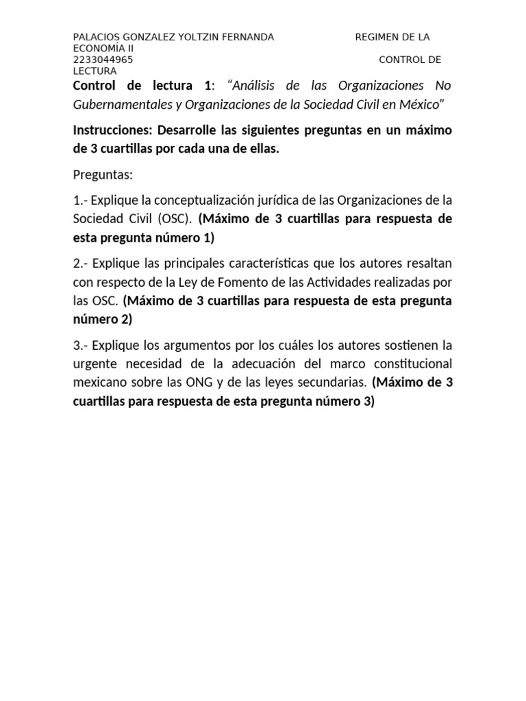 mexicano sobre las ONG y de las leyes secundarias. (Máximo de 3