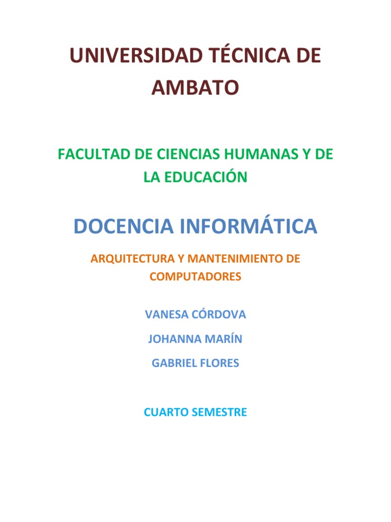 ARQUITECTURA Y MANTENIMIENTO DE COMPUTADORES VANESA CRDOVA JOHANNA MARN GABRIEL FLORES