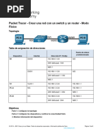 Packet Tracer - Crear una red con un switch y un router - Modo