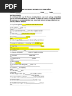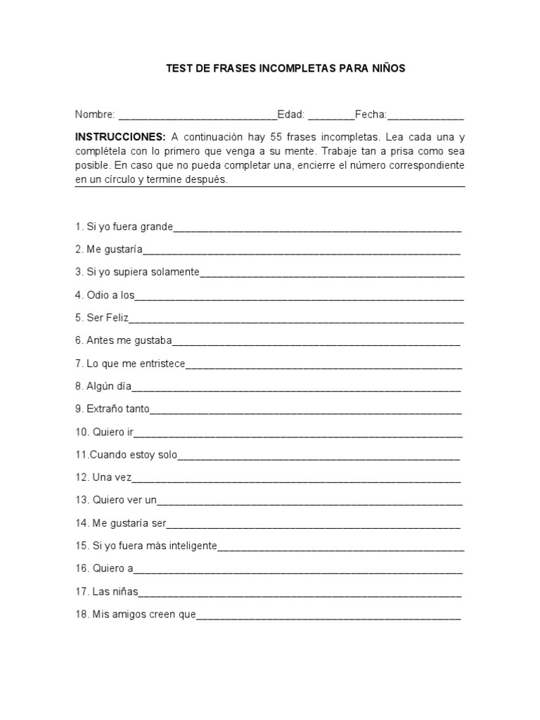 TEST DE FRASES INCOMPLETAS PARA NIOS