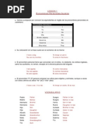 CURSO DE PERFECCIONAMIENTO DE LA LENGUA INGLESA CLASE 1 - THE SIMPLE AND CONTINUOUS PRESENT Read carefully this grammar note. (Lee esta nota de gramtica atentamente) GRAMMAR - SIMPLE PRESENT/CONTINUOUS PRESENT (gramtica - presente simple y presente continuo) El presente simple es el presente en general (I leave = Yo me marcho). El presente continuo indica que la accin esta pasando en este momento (I am leaving = yo me estoy marchando). OBSERVA: En ingls es necesario utilizar uno u otro dependiendo del momento en el que se produzca la accin. Por ejemplo, "Do you leave home now?" es incorrecto; debera ser "Are you leaving home now?". En espaol las 2 frases significan "Sales de casa ahora?"