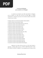 02. Cumplimentando lo anterior procedern a complementar el saludo pronunciando el rezo siguiente en dialecto anag: Alafia, Alafia om, Alafia ag, Alafia Obi, Alafia arik Babaga. Ellionde Obatal or ay. (Paz y felicidad para sus hijos y para todos los seres humanos vivos y muertos. Que recibamos las bendiciones de Obatal). I. ORISAS O ENTIDADES que hablan en este Odu. Olofin (Dios), Obatal, Orunmila, Chang, Los Ibeyis. Babal Ay y Unle. II. REFRANES que servirn de orientacin en el Registro. 01. 02. 03. 04. 05. 06. Por uno empez el mundo y si no hay bueno no hay malo. Para que el mundo sea mundo; hgase lo bueno y lo malo. El mal siempre ocupa un lugar en cualquier parte del mundo. No haga UD. el mal. Cuide de no perder UD. mismo su propia cabeza. El que mucho abarca poco aprieta. Eyeni, revolucin o tragedia. CURSO DEL ORACULO SAGRADO DEL OBI TEMA XV El Orculo De Biag 02. Cumplimentado lo anterior procedern a complementar el saludo pronunciando el rezo siguiente en dialecto anag: Alafia, Alafia om, Alafia ag, Alafia Obi, Alafia arik Babaga. Ellionde Obatal or ay. (Paz y felicidad para tus hijos y para todos los seres humanos vivos y muertos. Que recibamos las bendiciones de Obatal). I. ORISAS O ENTIDADES que hablan en este Odu. Olofin (Dios), Obatal, Orunmila, Chang, Los Ibeyis, Babal Ay y Unle. II. REFRANES que servirn de orientacin en el Registro. 01. Por uno empez el mundo y si no hay bueno no hay malo. 02. Para que el mundo sea mundo; hgase lo bueno y lo malo. 03. El mal siempre ocupa un lugar en cualquier parte del mundo. No haga UD. el mal. 04. Cuide de no perder UD. mismo su propia cabeza. 05. El que mucho abarca poco aprieta. 06. Eyeni, revolucin o tragedia. 07. Todos necesitamos el bien; pero no todos sabemos apreciarlo. 08. T sabes dos, ensea uno. T sabes uno, ensea la mitad. 09. Por no ensear lo ltimo, el mono le gan al len. 10. No saques agua con canasta. 11. Ten en cuenta al que te envidia. 12. Una cosa piensa el borracho, otra el bodeguero. 13. De mal agradecido no esperes bien. 14. Nunca digas todo lo que sabes.