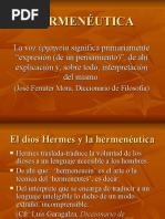 La Hermenutica no es una direccin dentro de la fenomenologa ni de la filosofa, Tampoco es un mtodo sobrepuesto a ella, Es un modo de pensar originariamente la esencia de la fenomenologa y la filosofa (mediante una teora y una metodologa) Es un modo de comprender todo lo dicho en un decir y la presencia del Ser en el mundo.