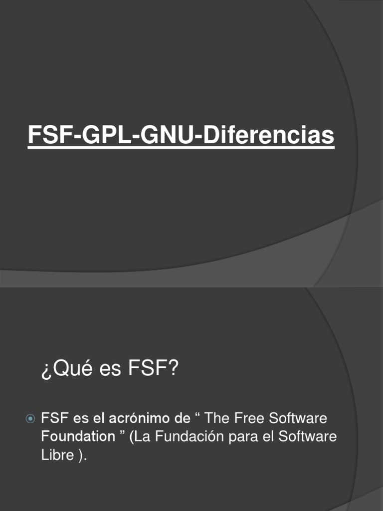 FSF es el acrnimo de The Free Software Foundation (La Fundacin para el Software Libre ).