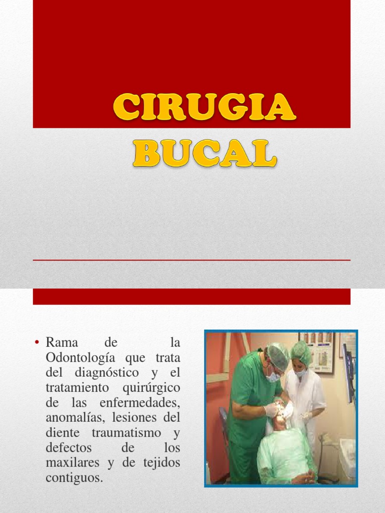 Rama de la Odontologa que trata del diagnstico y el tratamiento quirrgico de las enfermedades, anomalas, lesiones del diente traumatismo