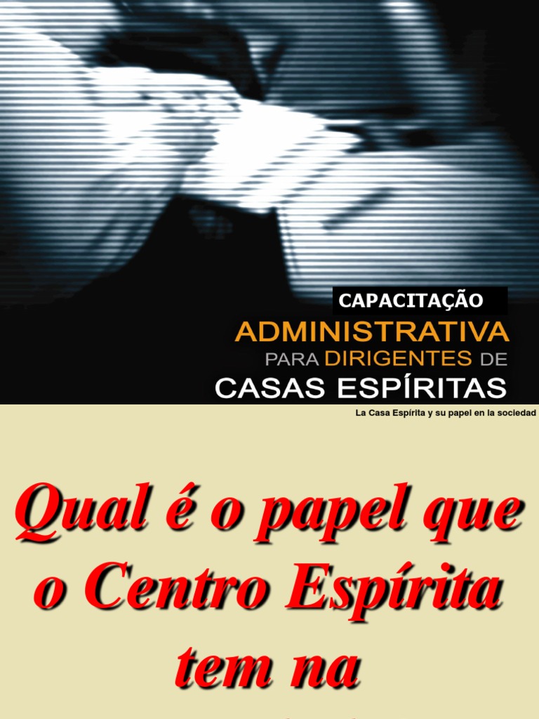 (...) A Casa Esprita a clula mater da nova sociedade, (...). Uma Escola, ..., que no apenas instrui, mas tambm educa. (...) ser escola e santurio, hospital e lar, onde as almas encarnadas e desencarnadas encontraro diretrizes para uma vida feliz e ao mesmo tempo, o alimento para sobreviver aos choques do mundo exterior. (*)
