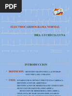 El electrocardiograma (ECG) es el registro grfico, en funcin del tiempo, de las variaciones de potencial elctrico generadas por el conjunto de clulas cardiacas y recogidas en la superficie corporal. El ECG es un examen que aislado no es diagnstico de enfermedad cardaca ni tampoco la puede excluir del todo. El ECG debe ser siempre interpretado en conjunto con los hallazgos clnicos y de otros exmenes paraclnicos. Usted aprender que sta afirmacin es cierta para la gran mayora de los exmenes paraclnicos.