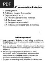 Ejemplos: Algoritmos de Prim y Dijkstra: n candidatos, la funcin de seleccin e insercin son O(n) y O(n2). Devolucin de monedas: podemos encontrar el siguiente elemento en un tiempo constante (ordenando las monedas): O(n).