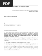 [Link] algunos datos que permiten sugerir que el estado de nimo depende de la actividad cerebral de reas diversas. 2. En el caso del mal humor y la clera (acompaada de hipertensin y otros signos) es bien conocida la puesta en marcha de circuitos que combinan la amgdala centromediana y el hipotlamo lateral. 3.. En el caso del buen humor y la risa se han registrado activaciones del hemisferio izquierdo primero y luego del hemisferio derecho antes de que el buen humor se manifieste en risa abierta y bienhechora.