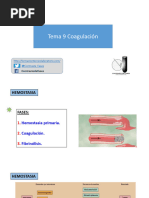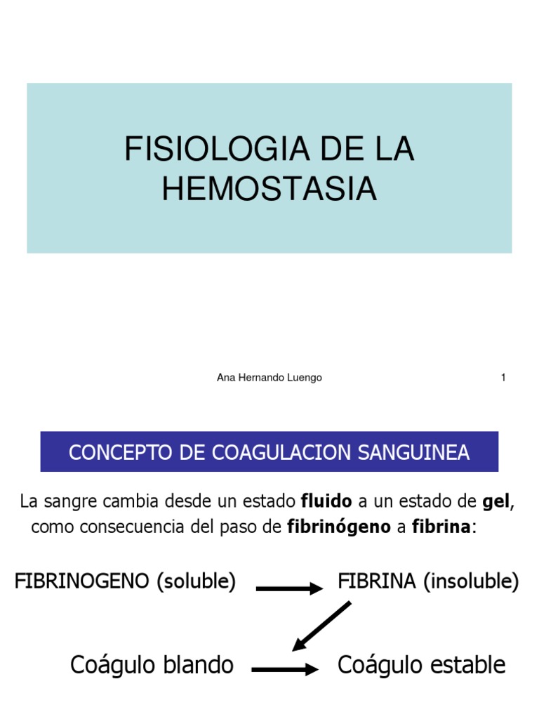 La coagulacin es el conjunto de reacciones que conducen a la formacin de fibrina, protena insoluble que evita la prdida de sangre cuando se lesiona un vaso