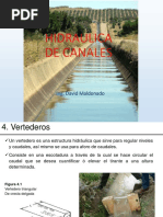 condiciones, o sea, se asumen un derrumbe instantneo que se produce inmediatamente aguas arriba de un vertedero, como el agua sigue llegando sin poder pasar el obstculo, el nivel del canal comienza a subir hasta que en un momento dado se desborda. Debido a la pendiente transversal fuerte, las velocidades son grandes, la erosin intensiva y en poco tiempo se pueden destruirse tramos de canal bastante grandes, cuya reparacin resulta sumamente costosa. O Para evitar esto se construyen aliviaderos que son estructuras destinadas a evacuar el agua en forma segura siempre que el nivel del agua en el canal pase de un cierto lmite adoptado.