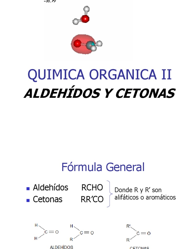 . por lo que debilita el estado de transición. Esto se debe a dos factores: •Estéricos: donde el aldehído tiene un H.Propiedades Químicas de Aldehídos y Cetonas Los aldehídos sufren adición nucleofílica con mayor facilidad que las cetonas. la cetona tiene un grupo alquilo que es mas grande. •Electrónico: el grupo alquilo libera e-.