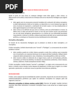 En funcin de los mecanismos fisiopatolgicos, el dolor puede diferenciarse en NOCICEPTIVO o NEUROPATICO: El dolor NOCICEPTIVO es la consecuencia de una lesin somtica o visceral. El dolor NEUROPATICO es el resultado de una lesin y alteracin de la transmisin de la informacin nociceptiva a nivel del sistema nervioso central o perifrico. Un de sus caractersticas es la presencia de Alodinia (dolor frente a estmulos que habitualmente no son dolorosos).