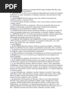 Escherichia coli.- Coloniza el intestino delgado del humano y animales pocas horas despus del nacimiento, es parte de la microbiota normal; pero hay cepas que pueden ser patgenas. P.I:: 1 3 d. (manos, superficies, recipientes, utensilios, etc.).