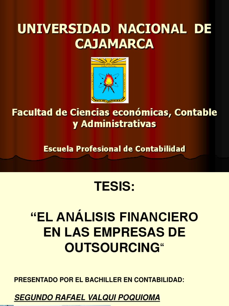 ANTECEDENTES BIBLIOGRFICOS Se ha determinado la existencia de muchos trabajos de orientacin contable, relacionados con el anlisis de estados financieros de empresas comerciales e industriales; pero ninguno relacionado con las empresas de outsourcing; sin embargo algunos trabajos han sido tomados en cuenta para desarrollar esta investigacin tales como: