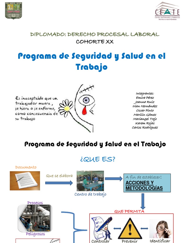 Programa de Seguridad y Salud en el Trabajo: Es el conjunto de objetivos, acciones y metodologas establecidos para identificar, prevenir y controlar aquellos procesos peligrosos presentes en el ambiente de trabajo y minimizar el riesgo de ocurrencia de incidentes, accidentes de trabajo y enfermedades de origen ocupacional.