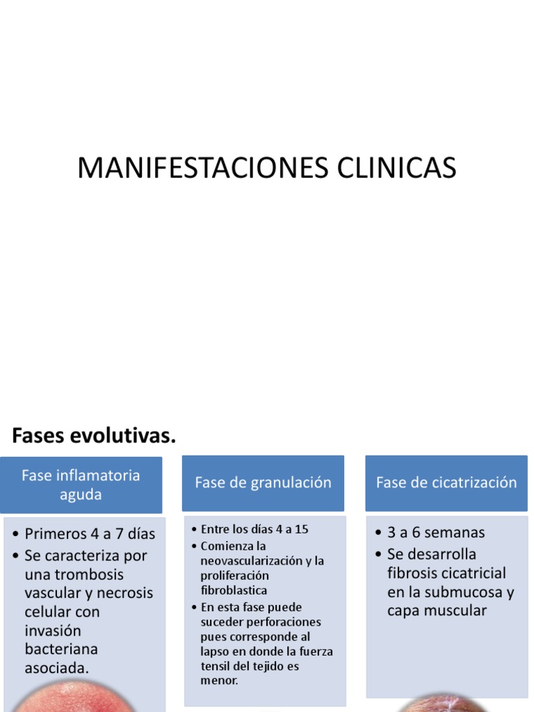 Fase de cicatrizacin 3 a 6 semanas Se desarrolla fibrosis cicatricial en la submucosa y capa muscular