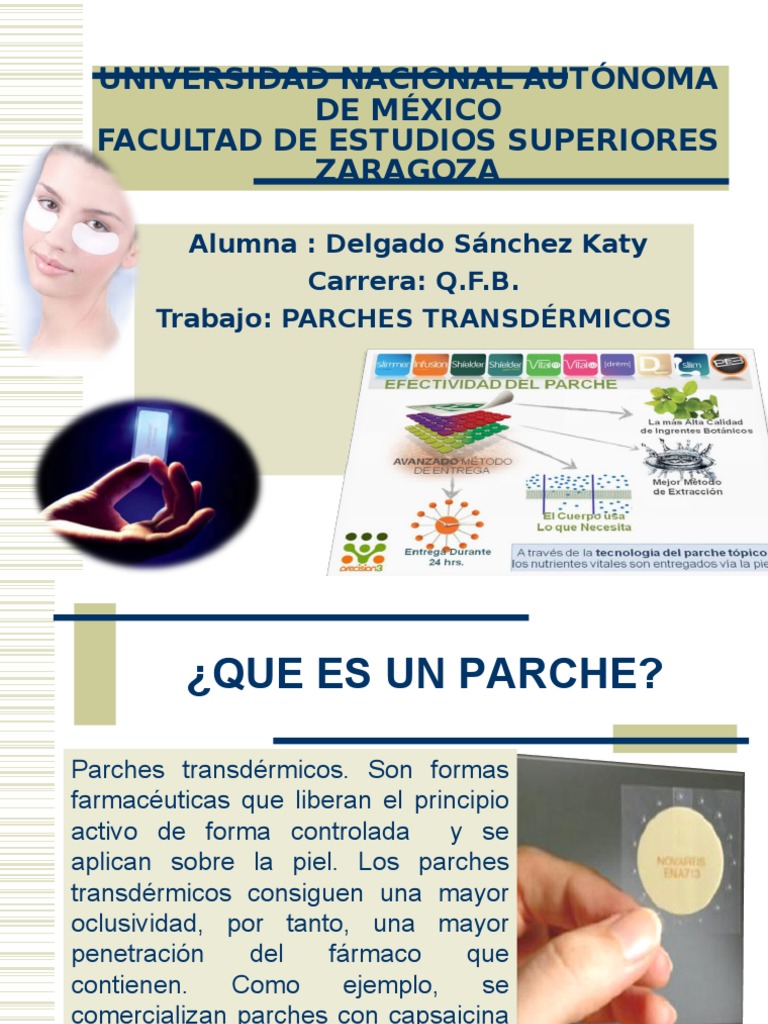 Alumna : Delgado Snchez Katy Carrera: Q.F.B. Trabajo: PARCHES TRANSDRMICOS