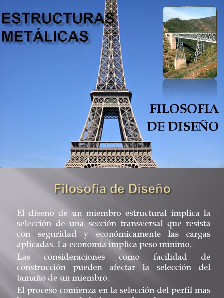 El diseo de un miembro estructural implica la seleccin de una seccin transversal que resista con seguridad y econmicamente las cargas aplicadas. La economa implica peso mnimo. Las consideraciones como facilidad de construccin pueden afectar la seleccin del tamao de un miembro. El proceso comienza en la seleccin del perfil mas ligero que cumpla la funcin deseada