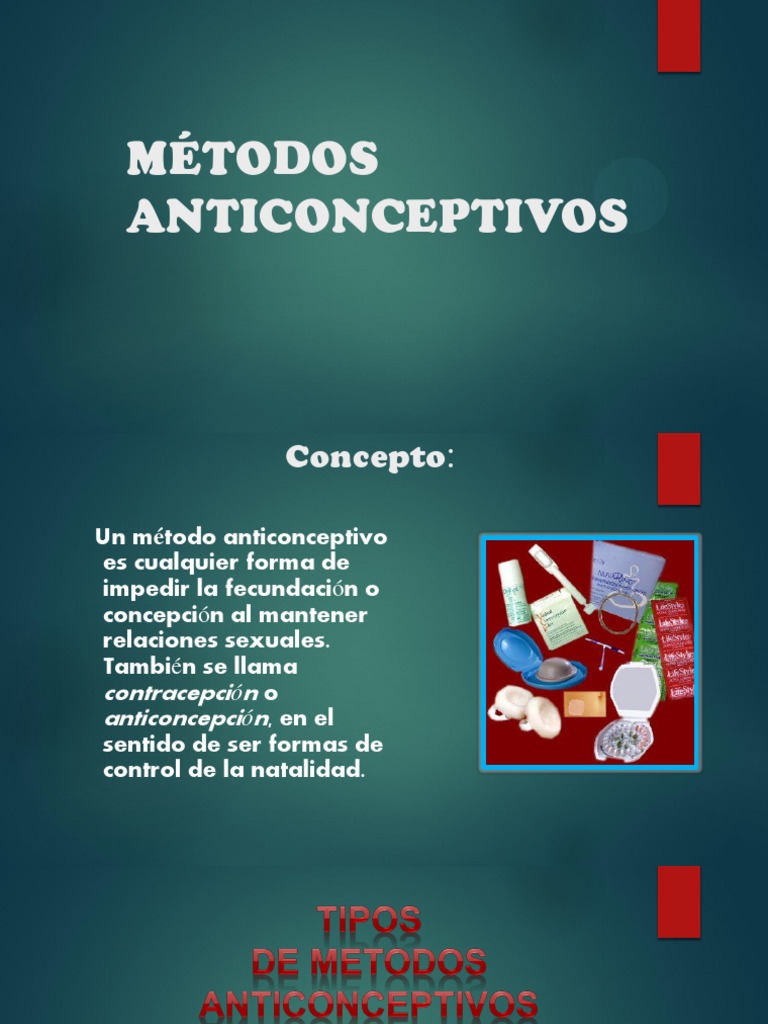 Un mtodo anticonceptivo es cualquier forma de impedir la fecundacin o concepcin al mantener relaciones sexuales. Tambin se llama contracepcin o anticoncepcin, en el sentido de ser formas de control de la natalidad.