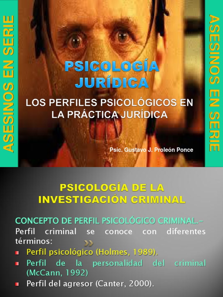 CONCEPTO DE PERFIL PSICOLGICO [Link] criminal se conoce con diferentes trminos: Perfil psicolgico (Holmes, 1989). Perfil de la personalidad del criminal (McCann, 1992) Perfil del agresor (Canter, 2000).