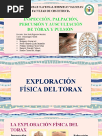1. Percusin del lmite superior en derrames pleurales En este caso, se produce una zona de matidez en las porciones bsales del trax, cuyo lmite superior es variable de acuerdo con la magnitud y el contenido del derrame. Si el derrame es mediano, el lmite superior describe una curva parablica, cuya porcin ms alta corresponde a la zona subescapular, descendiendo posteriormente hacia la regin vertebral y, anteriormente, hacia la regin infraaxilar (lnea de Damoiseau-Ellis).