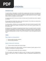 Existen dos tipos de excavadoras diferenciadas por el diseo del conjunto cuchara-brazo-pluma y que condiciona su forma de trabajo: