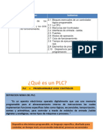 partes fundamentales son la Unidad Central de Proceso (CPU), la Memoria y el Sistema de Entradas y Salidas (E/S). La CPU se encarga de todo el control interno y externo del PLC y de la interpretacin de las instrucciones del programa. En base a las instrucciones almacenadas en la memoria y en los datos que lee de las entradas, genera las seales de las salidas. La memoria se divide en dos, la memoria de solo lectura o ROM y la memoria de lectura y escritura o RAM.