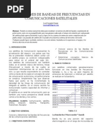 BANDAS DE TRABAJO El satlite captura el campo electromagntico de la seal y la retransmite hacia la tierra modulada en frecuencia como un enlace de bajada. los efectos del ruido se ven disminuidos en la banda de 2 - 10 [GHz]; por esta razn esta banda es conocida como ventana de microondas. As, INTELSAT emplea las siguientes bandas: C: up link 5,925-6,425 GHz, Down link 3,7-4,2 GHz ku: up link 14-14,5 GHz, Down link 11,7-12,2 GHz Ka: up link 19,7 GHz, Down link 31Ghz