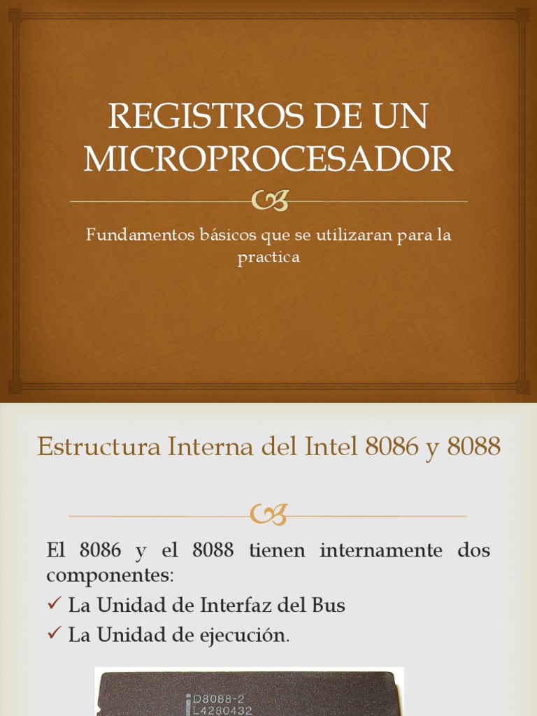 El 8086 y el 8088 tienen internamente dos componentes: La Unidad de Interfaz del Bus La Unidad de ejecucin.