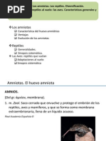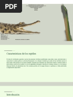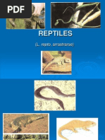 Cuerpo de forma variable: compacto en algunos (tortugas) y alargados (culebras) Epidermis: escamas crneas, con pocas glndulas. Generalmente tetrpodos que trepan corren o nadan. Pueden faltar en serpientes por ejemplo. Respiracin pulmonar (poco desarrollados), sin branquias aunque sean acuticos como culebras de agua o ocodrilos. Corazn de 2 aurculas y 1 ventrculo que pasa a ser dos ms dos en los cocodrilos. Circulacin doble con mezcla de sangre salvo en los cocodrilos. Ectotrmicos Dioicos con fecundacin interna. Huevos protegidos por cscara calcrea y vitelo para alimento del embrin. Gracias a este huevo no dependen del agua para la reproduccin.