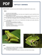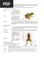 CARACTERSTICAS GENERALES Son tetrpodos, ectodrmicos (no generan calor interno) Respiracin branquial en las larvas y pulmonar, cutnea e incluso bucofaringea en los adultos. Piel: desnuda y permeable al agua por lo que pueden respirar a travs de ella. Pueden tener glndulas venenosas y mucosas. Poseen cromatoforos que les colorean la piel: Verdosos y pardos para camuflaje o intensos para informar de la presencia de venenos. Extremidades: Con 4 dedos. Las posteriores estn adaptadas al salto y la natacin. Digestivo y excretor: Boca: Pueden tener dientes pequeos, lengua carnosa que puede proyectarse al exterior para la captura de presas (ranas), que son engullidas. Cloaca: donde desembocan el digestivo, reproductor y urinario. Circulatorio: Larvas como los peces. Adultos tienen circulacin doble /menor y mayor), aunque el corazn tiene dos aurculas y un ventrculo
